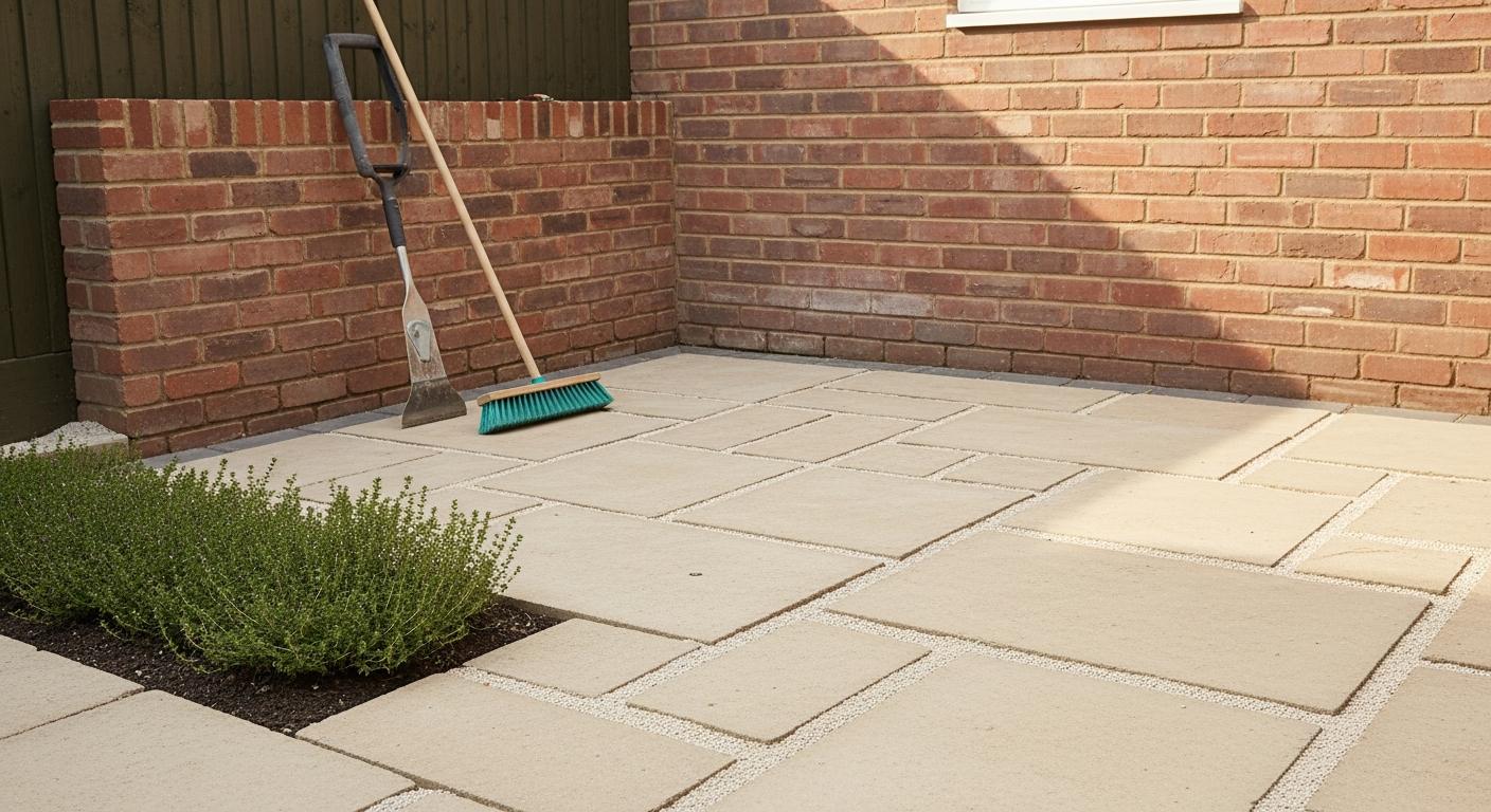 Schritt 9: Aushärten lassen. Für 24–48 Stunden nicht betreten oder befahren, Regen abhalten. Eine mobile Abdeckung bei Schauergefahr hilft. Halte Haustiere fern, damit Fugenoberflächen nicht aufgerissen werden.